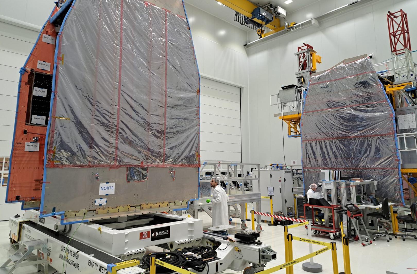 El SpainSat NG II, pesa 6,1 toneladas, tiene 7,2 metros de altura y una envergadura de casi 50 metros.